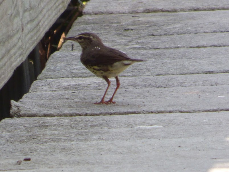 right on the boardwalk the always pumping of that tail, the Louisiana Waterthrush.