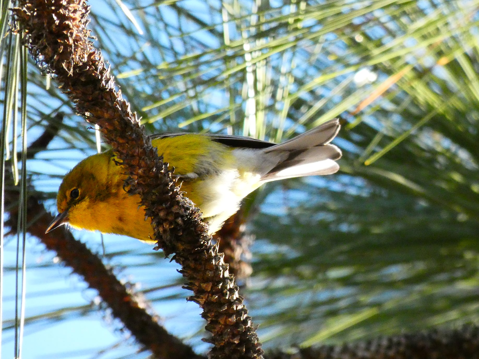 I hear the trilling call of the Pine Warbler, they are everywhere right now...just look up and you will probably see one...